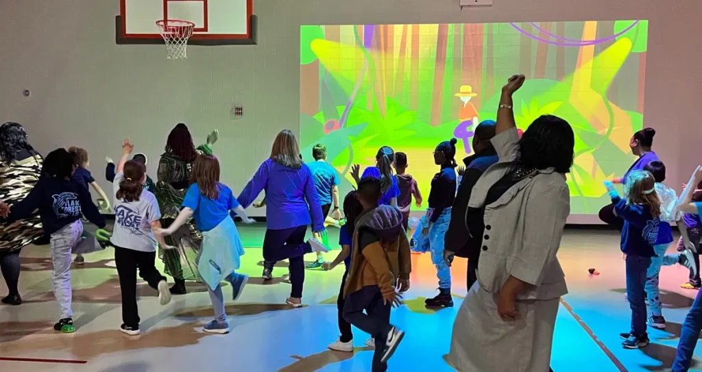 The innovative Lu Interactive Playground System, funded through a competitive grant awarded by the Dougherty County Schools’ Charter System Innovation Grants Program, transforms the school gym into an interactive learning environment, seamlessly integrating academic subjects with physical activity.