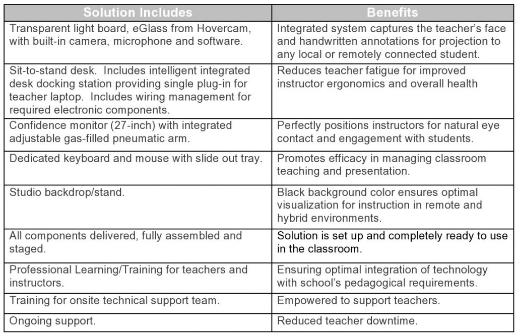 The PowerGlass Classroom Studio is a new and highly engaging classroom presentation solution designed to dramatically improve and positively impact learning in remote, hybrid and in-person classroom environments. Delivered as a complete, ready-to-use system, the PowerGlass Classroom Studio combines a transparent light board with build-in camera and software, integrated into a fully functional teaching station. PowerGlass also serves as a unique presentation resource to dynamically enhance teacher presentations and professional learning opportunities.