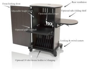 Our compact, feature rich multi-maker cart has a small footprint with a big impact. The MM cart can be used as a presentation cart, a great addition to your makerspace room, or a charging and storage solution for a classroom or media center. Let us help you organize so you can teach and make!