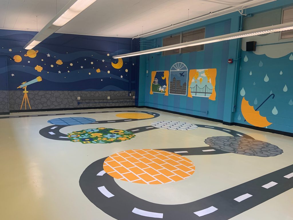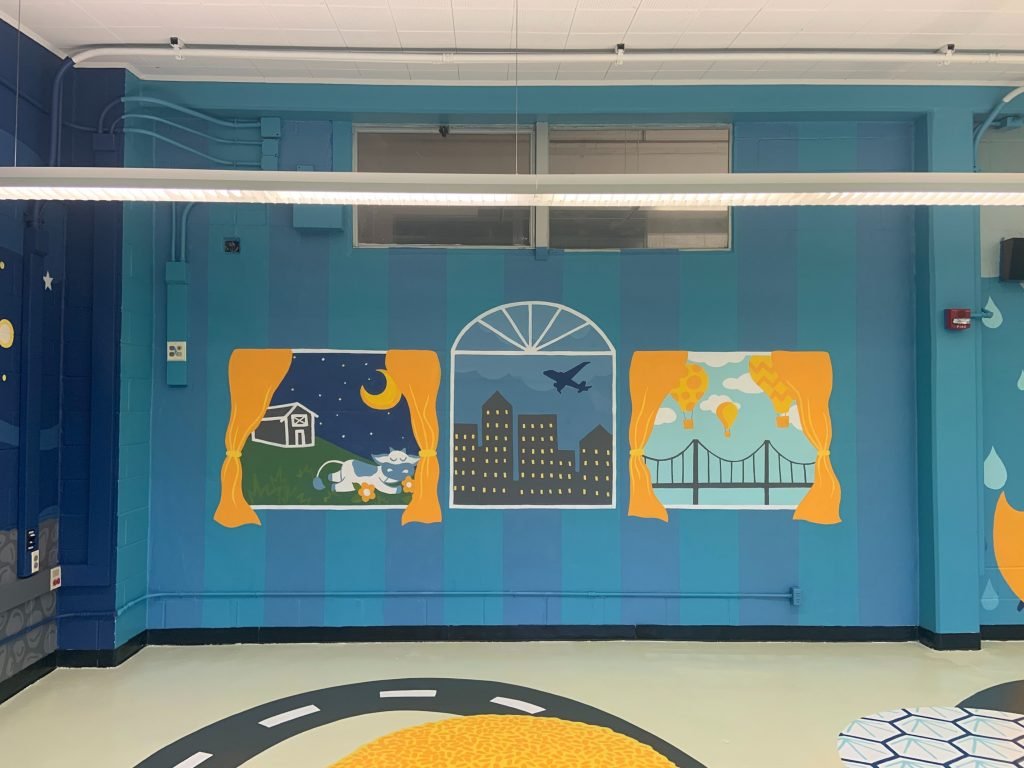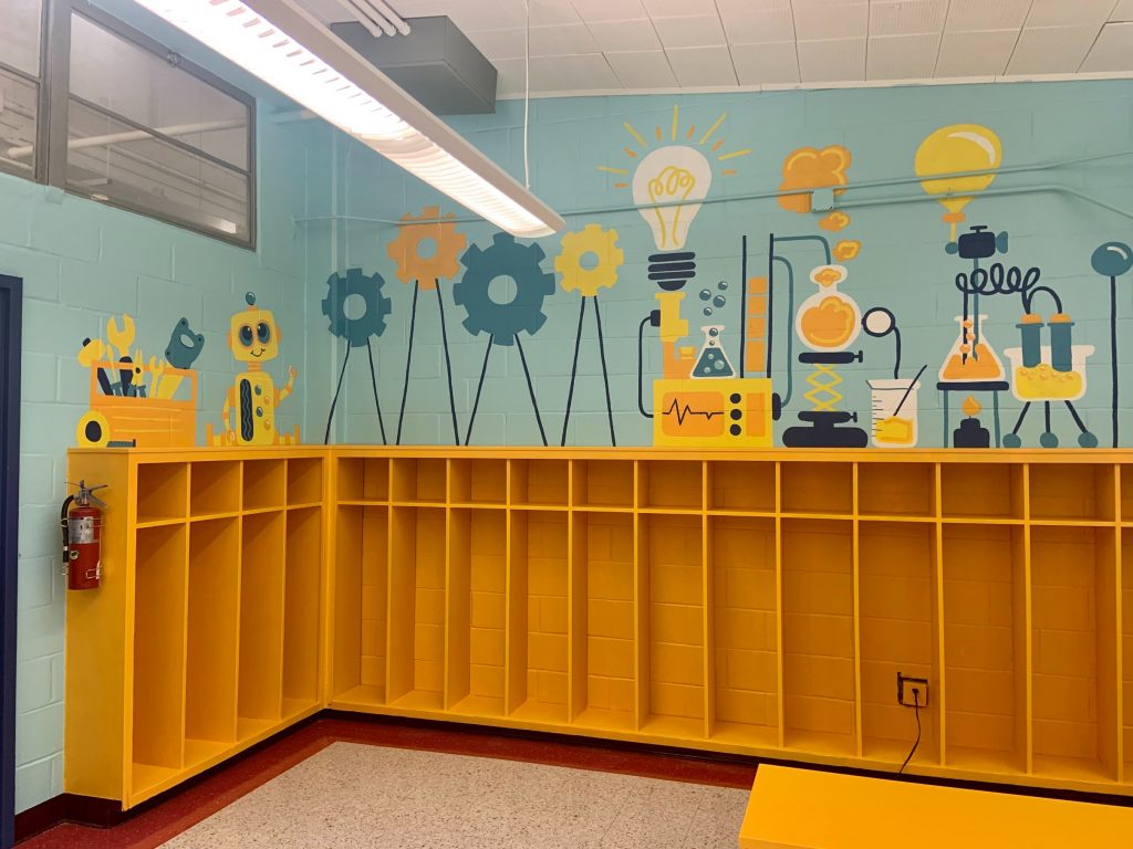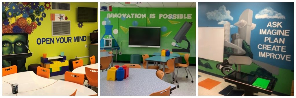 PowerUpEDU Mural Artist creates the backdrops for amazing STEM & Early Literacy Labs in Duval County, FL.