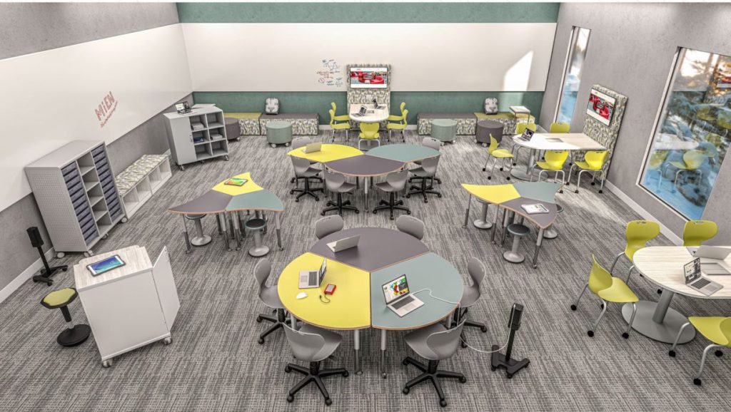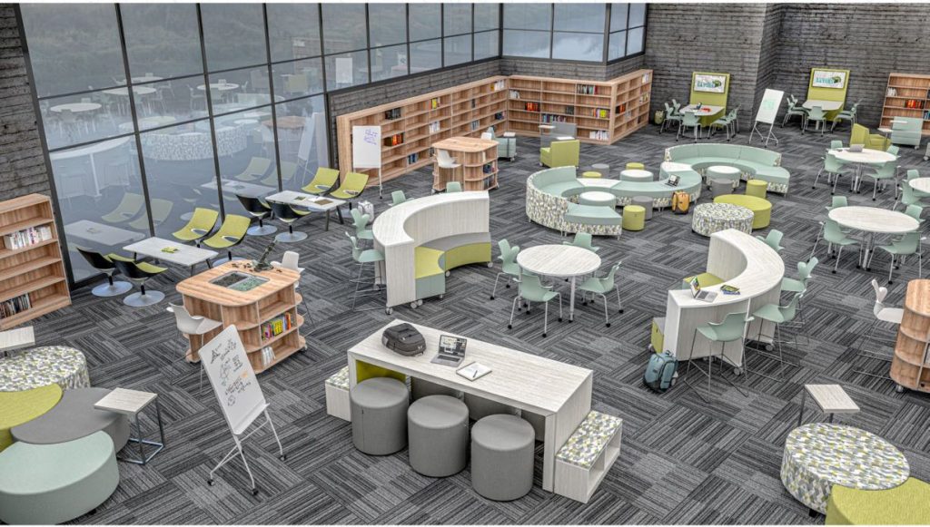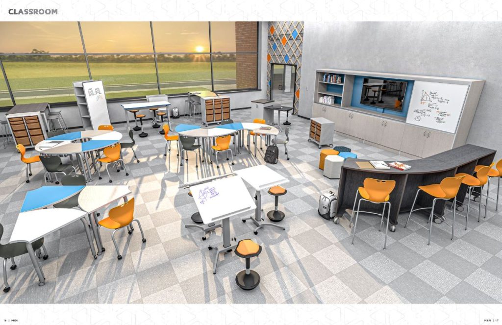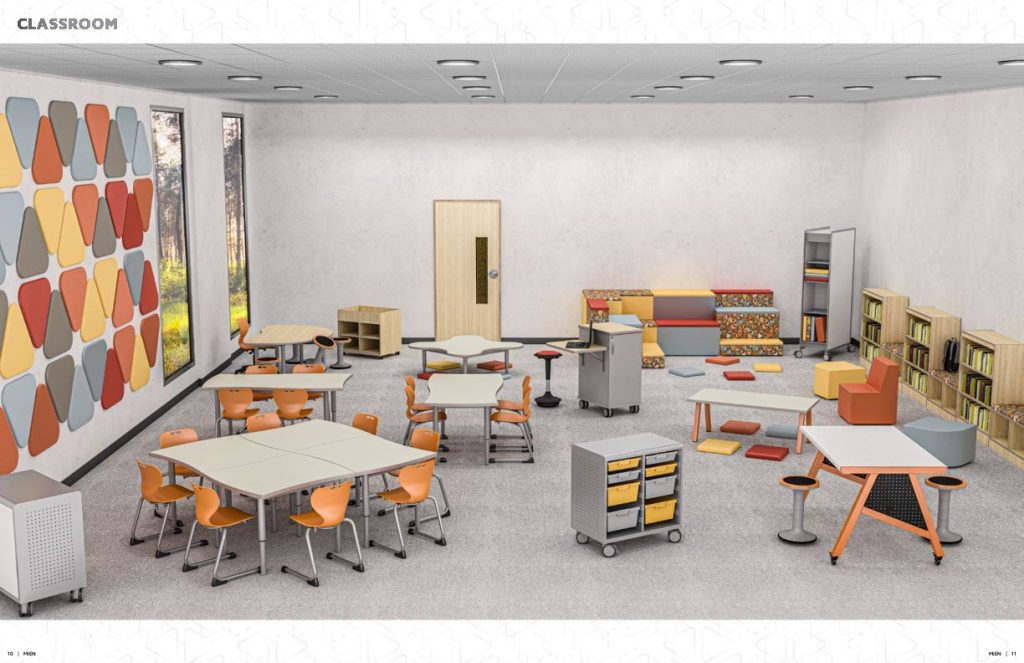 Our innovative furniture creates spaces that promote student engagement and creative thinking while reflecting a school’s culture. Created by education market experts, these award-winning designs are flexible and adaptable incorporating mobile and collaborative features that support the 21st Century school and Learning concepts. Our design philosophy is built around the new generation of student and faculty, and the technology-driven, collaborative learning environments that they require to be successful. Whether furnishing the classroom, media center, or cafeteria, we can provide the ability to create flexible, functional, and fun learning environments.