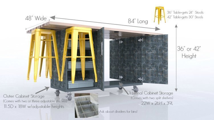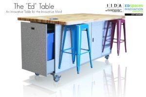 International Interior Design Association’s ED Spaces Innovation Awards 2017 Winner. The Award-winning Ed Table embodies the “Spirit of Innovation” & provides the most complete maker experience available! Maximizes creative time while minimizing logistical preparation work and clean-up. For project-based learning, the Ed Table is a fundamental element for engaging learners.