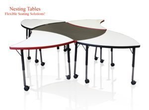 The Dry Erase Nesting Tables with adjustable height legs are genius just like your students! Allowing students the freedom to write, draw or solve problems on a dry erase surface cultivates creativity and encourages students to become more confident in their work. For teachers, the fun and easy part of these modular nesting tables is to create shapes or groups in your classroom that fit your teaching style. So have fun, and teach well! *Quick Ship Eligible