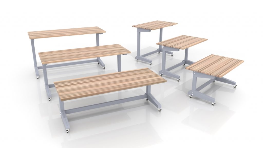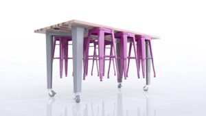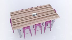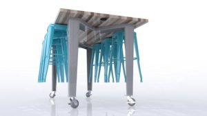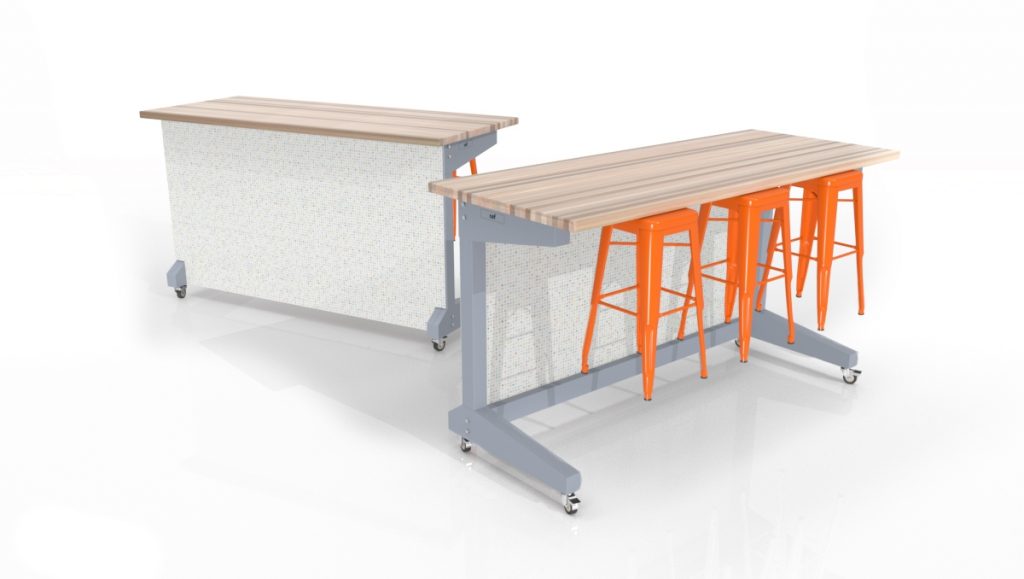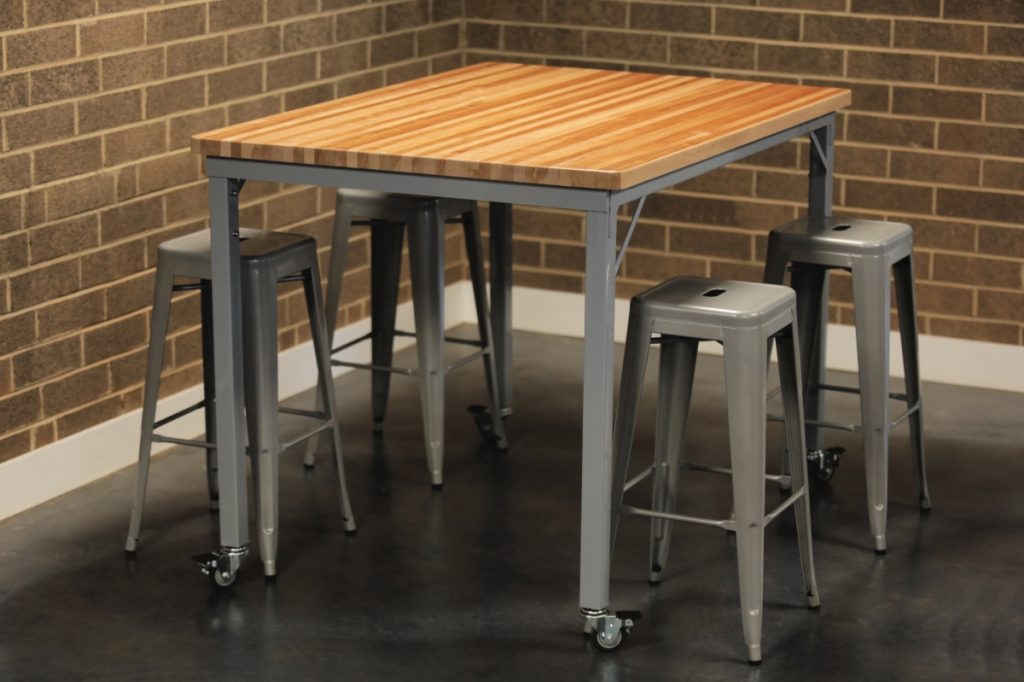 The IDEA Island was inspired by those that are dedicated to inspiring creativity and discovery in children and adults. By these educators pushing the limits of what can be accomplished in the classroom, CEF was challenged to create a piece that would help drive their efforts. The combination of industrial design with warm wood, strength, and innovation inspired the IDEA Island. Choose from two fixed heights(34″ or 42″) and seating for 6 or 8.