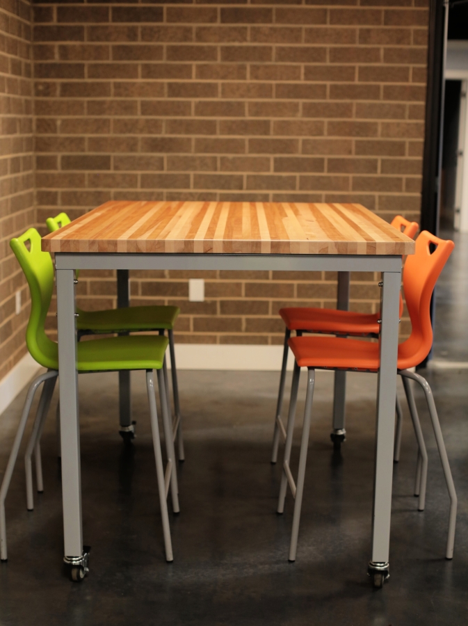 Our butcher block table for makerspace environments allows students to design and build creative projects and empowers students to work together. By offering a hardy work surface, adjustable height legs for sitting or standing, optional power unit and monitor arm, the sky’s the limit! Foster a creative environment and see where you students will go!